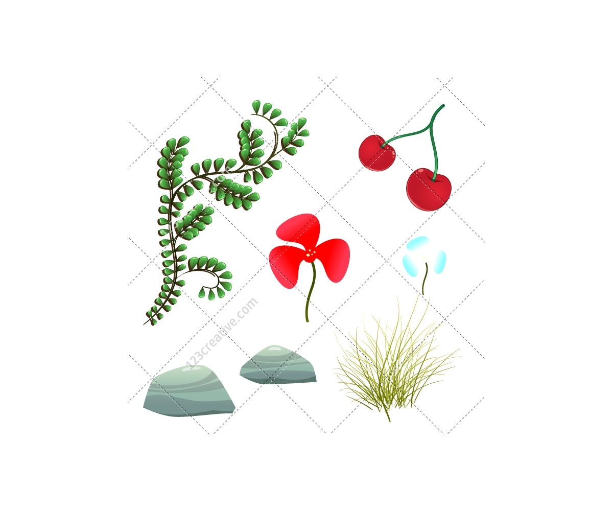 Landscape vector - isolated natural vector elements, nature vectors, tree vector (7 vectors, in 1 file).