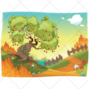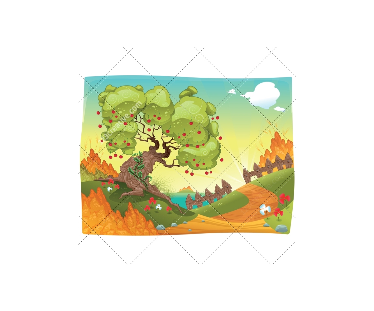 Tags: landscape vector, color vector, cartoon, landscape illustration, cloud vector, clouds, fantasy background, tree vector, fruit tree vector, cherry vector, cherries, cherry tree vector, flower vector, flowers, grass vector, green grass, tall grass, branch, bush vector, bushes, vegetation vector, plant vector, plants, climbing plant, rice plant vector, grain vector, cereals, path vector, stone vector, stones, fence vector, wooden fence vector, picket fence, meadow, lake vector, fairy tale vector, child illustration, story vector, nature, natural, wood vector, wooden, magic, summer landscape, autumn vector, comic, vector illustration, vector pack for commercial use