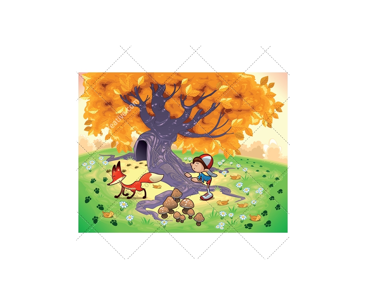 Tags: landscape vector, boy vector, fox vector, animal tracks vector, color vector, cartoon landscape illustration, background, tree vector, branch, mushroom vector, flower vector, flowers, leaf vector, leafs, leaf vector art, meadow, vegetation, animal track vector, grass vector, track vector, fairy tale, autumn landscape, summer landscape, nature, natural, comic, fantasy, vector illustration, natural background, commercial illustration
